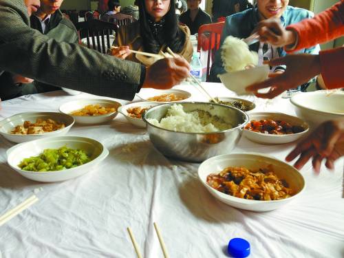 八菜一汤的团餐。 阮霁阳 摄