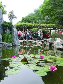 昨天,记者在留园的盆景园景点看到,迷人的睡莲提前绽放,让前来抚玩的中外游人沉醉个中。 □记者杭兴微摄