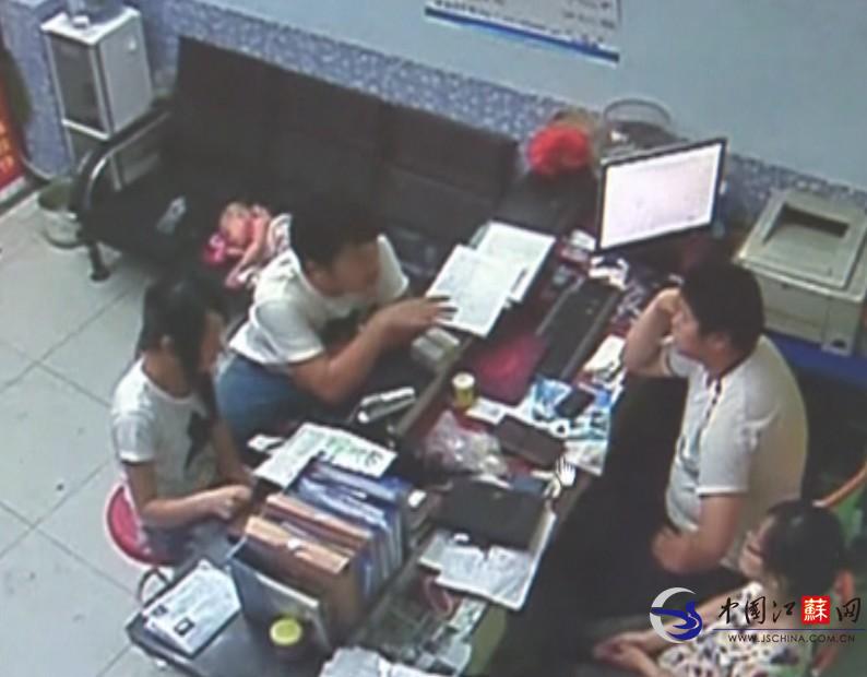 记者在监控视频上清楚的看到,女青年试图将钱包推向柜台上的拐角处,之后男青年站起来拿着宣传单挡住钱包,顺手拿起了钱包转移到了凳子上,然后剩小刘不留意的时候,金坛旅行社,顺手将钱包偷走并迅速分开旅行社。