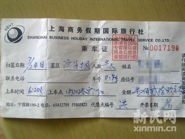 旅行社向扫墓旅客发放的搭车证。市民陈小姐 供图