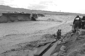 强降雨导致敦煌通往莫高窟的道路中断。新华社 发