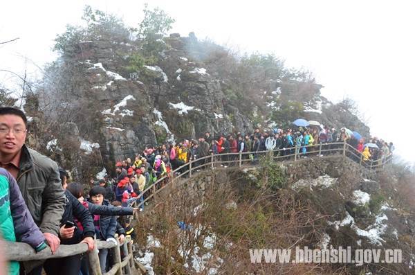 25日的恩施大峡谷,固然有许多景点依旧照旧白雪包围,可是丝绝不能匹敌各地旅客前来“一探毕竟”的热情。“哇,好壮观啊。”来自四川达州的旅客李密斯一边期待着转搭车,一边拿着手机对着远处若隐若现的山峦拍个不断。在大峡谷“一炷香”处,期待与“她”合影的旅客排起了长长的步队,“本日真是不虚此行啊,远处袅袅云雾升腾,近随处处白雪遮盖,大峡谷之美真是尽收我眼底呀”,步队中的活泼分子、来自湖北民院研究生院小赵的一席话逗得各人直乐,小赵说,本日来看了云雾中的大峡谷,比及春暖花开的时候再组织同学们一起,来看看阳光下大峡谷的另一种美。