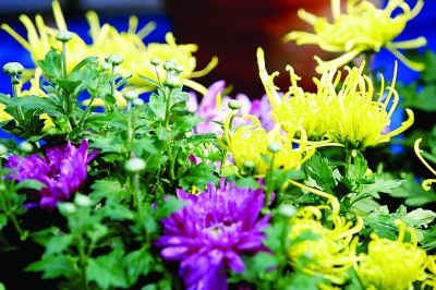 旅客一入园就会被公园南大门和西门两侧的菊花小景和情况所吸引,浓烈的桂花香中色彩富厚,格式多姿的菊花在风中挥动开花丝迎接着旅客。扬子晚报记者相识到,在公园的花草馆里同时展出了盆栽佳构菊花。今朝开的主要是菊花中早花品种,后头将连续增加。此刻着花的有16种近千盆,主要品种有大红袍、萝卜丝、满天星等。