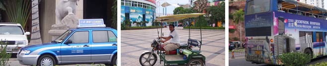 There are many lines city bus: No.202 and No.204, No. 11, No. 10, No. 8, etc. from 6am till 12am in the Sanya downtown are very popular, cost only 1 yuan each. To Yalong Bay, you can take the double decker from Dadonghai at 7 yuan. Or it cost RMB50+ from Sanya downtown to Yalong Bay by taxi. To Sanya airport, No. 8 bus from Dadonghai and downtown. To Sanya railway station, No. 204 and No. 10.