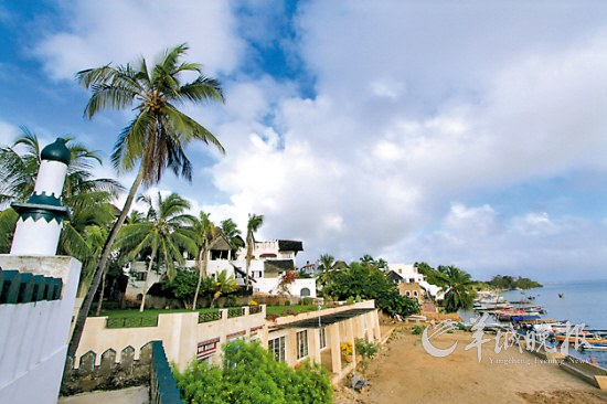 从内罗毕乘坐小飞机到拉姆岛要近2个小时,在最后的几分钟航程里,蔚蓝色的海湾、绿色的丛林与白色的建筑群在我们的脚下编织成一幅清丽无比的图画,无论蓝、绿、白都是那样一种透彻的、纯净的、闪闪发光的颜色,美得让人晕眩。