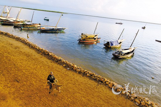 从小小的拉姆机场出来,我们乘着阿拉伯人流传下来的单桅三角帆船(当地人称作dhow)前往拉姆岛,Kijani酒店前来接我们的伊斯兰小伙阿卜杜拉笑着告诉我们:600年前郑和下西洋来到肯尼亚,第一个登陆的地方就是拉姆小岛。现在的拉姆博物馆里还陈列着自几个世纪以来中国古瓷、纺织品、交椅,甚至手动面条机。当地渔民多次从拉姆附近的海域打捞上来完好的古瓷器和陶罐,有些上面刻有汉字,有些印有龙的图案,表明这些东西必定来自中国。据说当时很多中国水手由于船舶损坏不得不在这里定居,现在拉姆岛对面的一个帕泰小岛上就有一个叫上海村的村落,村子里面大部分保留着中国人的血统。拉姆岛是拉姆群岛中人口最密集的一个岛,目前有1.7万人,99%是***,之所以人口在此集中,是因为只有拉姆岛才能打出没有咸味的地下水。
