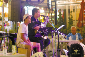 在餐厅一楼,记者见到了泰国传统的民俗乐器表演。开放式的舞台,吸引了来往逛街和吃饭的旅客。旁边散落了一些手工艺品店,店主悠闲地在一旁聊天,偶尔有中国游客参观,他也会热情地说一句“你好”,但也仅仅局限这句。